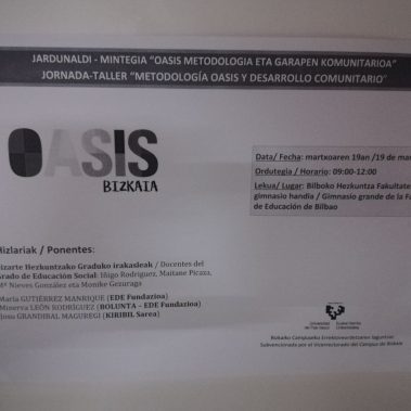 El equipo OASIS Bizkaia (EDE Fundazioa y Kiribil Sarea), al igual que el año hemos estado hoy en Leioa, con los alumnos y alumnas del Grado de Educación Social de la UPV (Universidad del País Vasco).