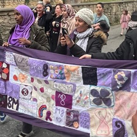 Este año celebramos el logro de que mujeres con velo, negras, jenas y tantas otras mujeres racializadas que conviven en Euskadi sostengan bien alto esa pancarta. Porque este día damos un paso más hacia la inclusión, hacia la creación de espacios seguros y hacia la unificación de la lucha por la igualdad para todas y todos.